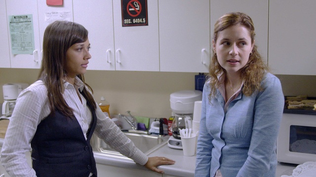 Michael brings two adult performers into the office in honor of Phyllis' wedding shower; Karen confronts Pam about her past with Jim.