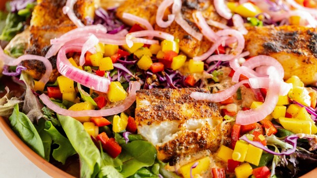 Ree Drummond is sharing four protein-packed and super easy dishes; first, Ree makes fish taco salad with delicious, spiced cod, a chile lime yogurt dressing and amazing mango pico de gallo.