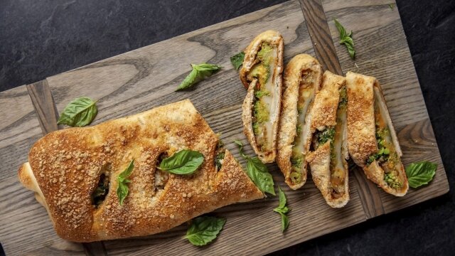 Ree makes buffalo chicken totchos, assembles a fun twist on pizza with her broccoli cheese stromboli and makes a simple, one-pot beef noodle skillet.