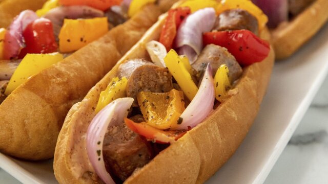 Ree Drummond dishes up great ideas for quick and easy game day dishes; five-cheese Pepperoni Pizza Queso; caramel and chocolate cookies; Sheet Pan Sausage and Pepper Hoagies; Garlic-Ranch Party Mix.