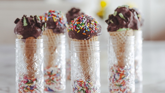 Ree Drummond shares cool desserts for hot summer days, including cherry almond chocolate chunk ice cream, party-ready boozy blackberry lime whips, classic homemade dipped cones and fabulous frozen prosecco grapes.