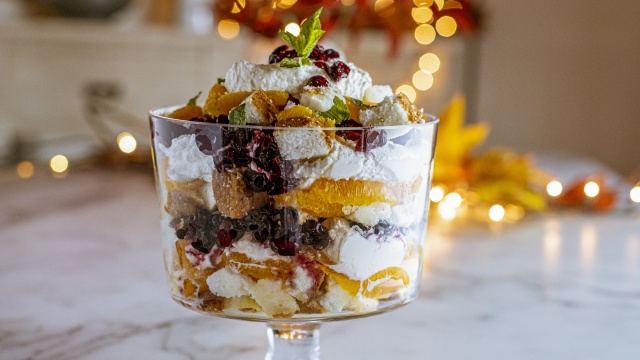 Ree Drummond is in the holiday spirit, sharing sweets for a Thanksgiving feast; she bakes up a spiced pumpkin cream cake, a cranberry orange trifle, a classic sheet pan Dutch apple tart and pretzel white chocolate cookies.