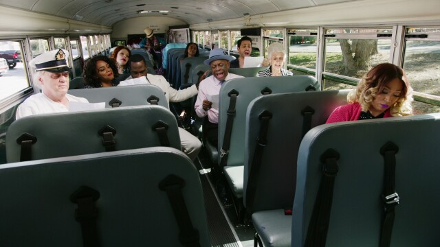 R&R cast arrive to a marina parking lot on a busted school bus, upset; costume designer Beth refuses to stay for the cruise and cusses them all out; Ivy and Randall announce she is joining the cast; the Barringer family wait on the yacht club deck.