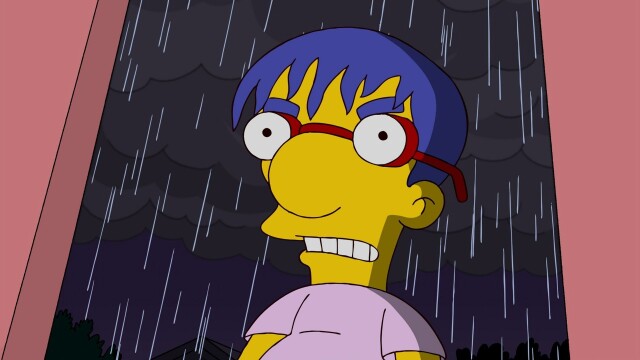 Milhouse takes the fall for a prank he and Bart pull together; Bart falls for a volunteer (guest voice Anne Hathaway) at Grampa's nursing home; Lisa predicts Springfield's future and is depressed by what she sees.