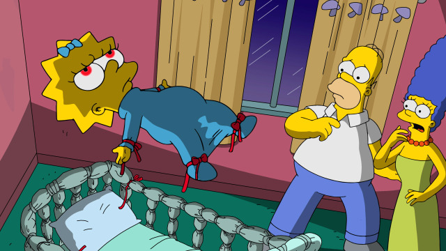 Maggie becomes possessed by an ancient demon; Lisa discovers a perfect version of her family in an alternate universe; Homer cannibalizes himself.
