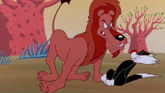 Sylvester asks one of his big cat relatives to switch places with him so he can trap Tweety.