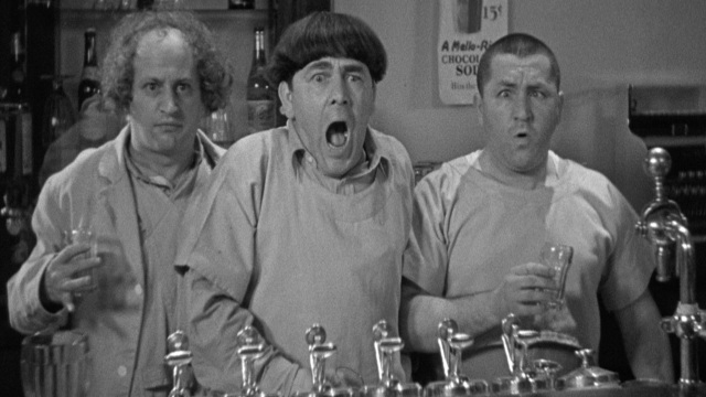 The Stooges are running the local drugstore, mixing up a potion that a desperate businessman decides to sell as scotch.