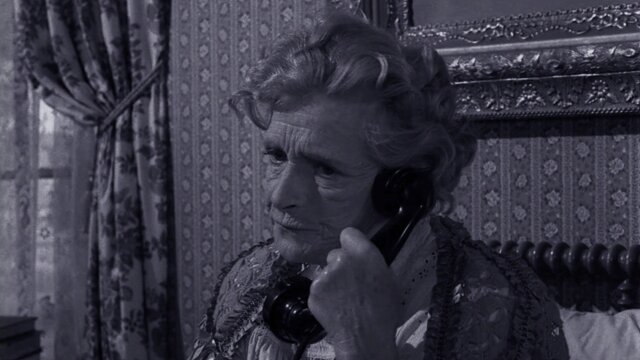 Elva Keene, confined to her bed and wheelchair, is driven to distraction by mysterious telephone calls on a dead line.