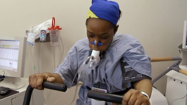 A woman participates in a study that examines weight loss.