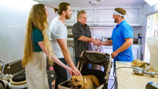Derrick helps the Kove family in Los Angeles and builds two devices for their three-legged dog, Bubba.