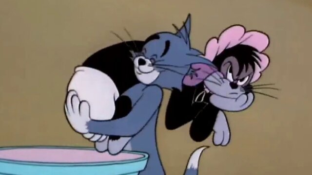 Butch disguises himself as a baby to get fed by Tom.