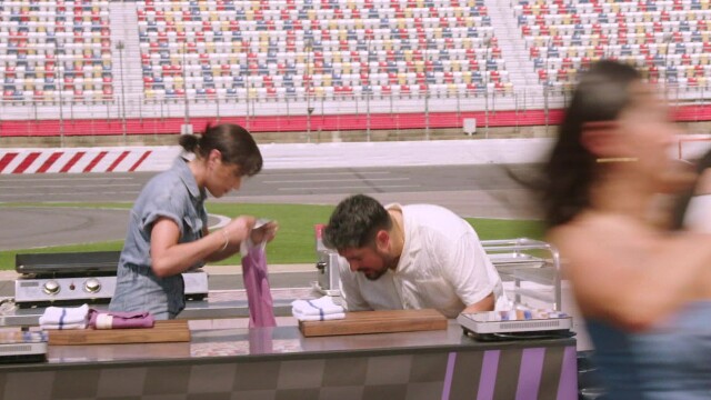 Heading to the Carolinas with 15 new chefs; for their first Quickfire Challenge, the chefs head to Charlotte Motor Speedway where they are greeted by Kristen, Tom and Gail and the first guest judges of the season, NASCAR Hall of Famer Jimmie Johnson and two-time NASCAR cup series champion Kyle Busch.