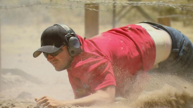 Teams grapple with an explosive obstacle course and endure trench warfare conditions; two competitors duke it out in a fierce battle with a multi-shot grenade launcher.