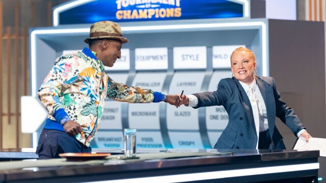 In the final first-round battles, Guy Fieri welcomes TOC VI semifinalist Lee Anne Wong to face off against Iron Chef Stephanie Izard. In the last battle of the round, the fourth mystery culinary icon is revealed to take on qualifier winner Kenny Gilbert.