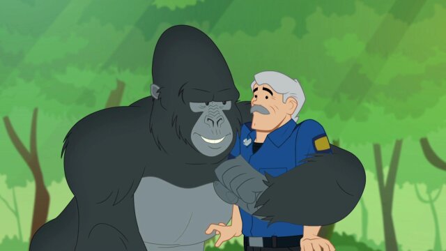 Chief helps Woodrow rescue gorillas from a volcanic eruption; his sons learn they are heirs to the throne of Griffin Rock.