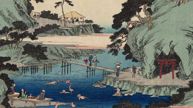 The filmmakers explore a well-known tourist resort just outside of Edo, where day-trippers are enjoying river recreation and forest walks, praying at local shrines, and sitting down for riverside picnics.
