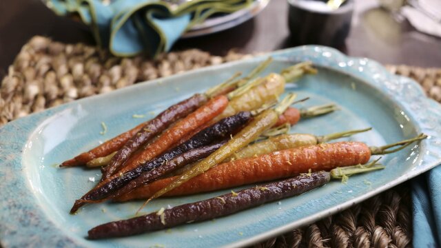Valerie celebrates spring's colorful bounty by creating a feast that delights the senses and her guest, "The Kitchen" host Katie Lee; she prepares golden raspberry goat cheese crostini, honey roasted rainbow carrots and purple and green kale salad.