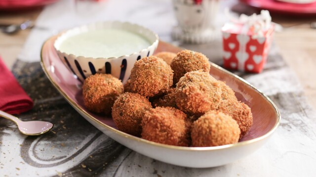 Valerie serves a treat-filled luncheon in appreciation of her best girlfriends; green pea arancini with herby lemon dipping sauce; a whole roasted side of salmon; escarole salad with roasted Meyer lemon vinaigrette; a citrus Pavlova for dessert.