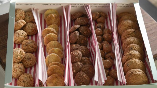 Valerie Bertinelli tests the boundaries of what a cookie can be by making cookies that are good for any time of day, including breakfast-sandwich cookies, chocolate and orange hazelnut cookies, and thyme and gruyere savory cookies.