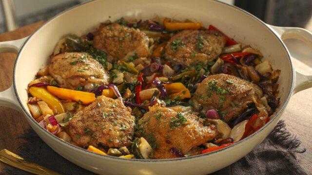 Valerie Bertinelli flips through her mom's old recipes for some beloved favorites; she makes cheese and crab bites, cocoa ripple cake, and cheesy baked cauliflower; she pairs sweet and smoky pineapple chicken thighs with a grapefruit gin and tonic.