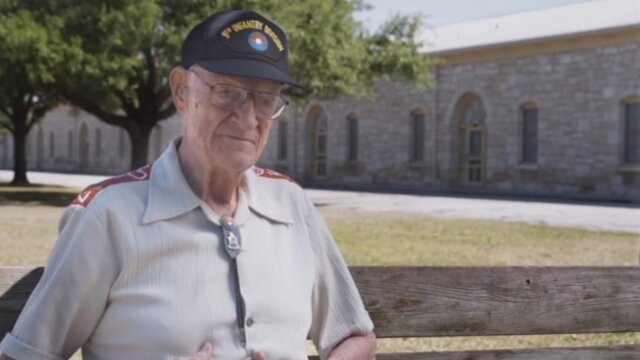 U.S. Marines battle for Peleliu in the Pacific; the Allies race toward Germany. Narrator: Gary Sinise.