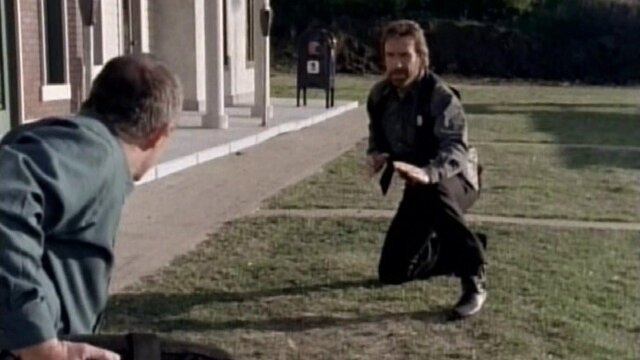 Walker and a legendary ranger (Stuart Whitman) uncover a plot to assassinate a U.S. senator (Ben Masters); guest Jonathan Banks.