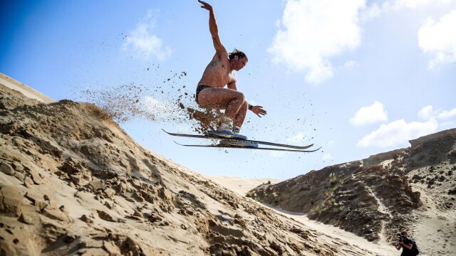 Jamie O'Brien and the crew do an eyebrow challenge as they ride some of New Zealand's epic sand dune mountains on skimboards and ski's before Poopies honors a bet by surfing in women's lingerie.