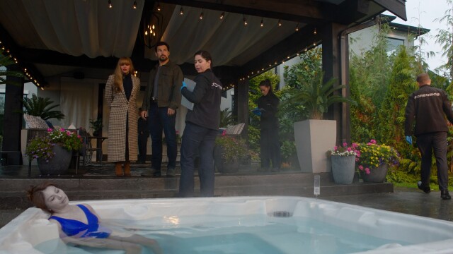 Max and Ellis investigate a locked-room mystery after the death of a high-powered fixer electrocuted in her penthouse hot tub, where she was the only one present at the time; actors, Vanessa Morgan, Giacomo Gianniotti, Jason Priestley, Tamara Taylor, Terry Chen, Amy Goodmurphy, Fletcher Donovan, Kaylah Zander.
