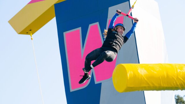 With Camille out sick, flight attendants, kindergarten crushes, and an EDM rock couple take on a tough "Wipeout" course.