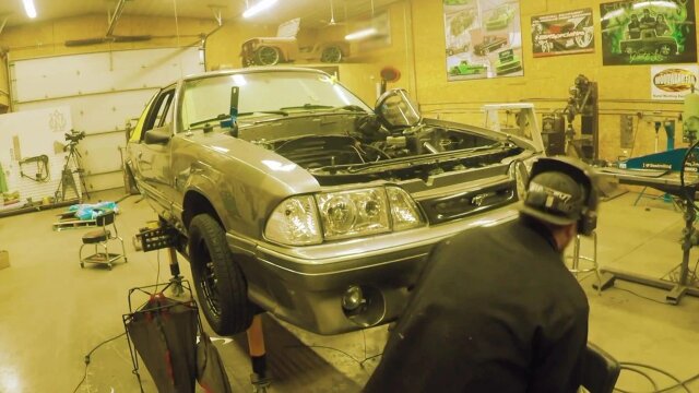 Justin Nichols and the crew are down-to-earth Midwestern guys known for meticulous fab work and incredible custom paint jobs; today, they continue working on the 1990 Mustang; Justin makes custom jogs for a client's Harley.