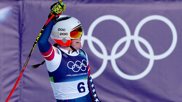 Breezy Johnson raced to gold in the women's downhill, edging Germany's Emma Aicher and Italy's Sofia Goggia to stand atop an Olympic podium for the first time.