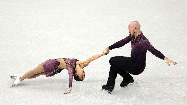 Ellie Kam and Danny O'Shea skated to "Hallelujah" by K. D. Lang for a 7th-place finish in the pairs short program. The pair scored 71.87 points.