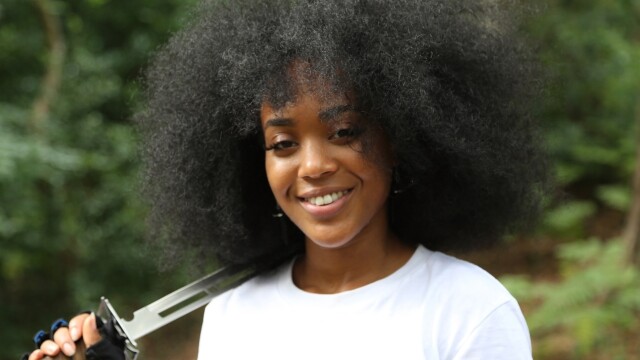 Shaina West teaches herself martial arts by watching YouTube while recovering from a motorcycle accident; she posts videos that go viral and "The Samurider" is born.
