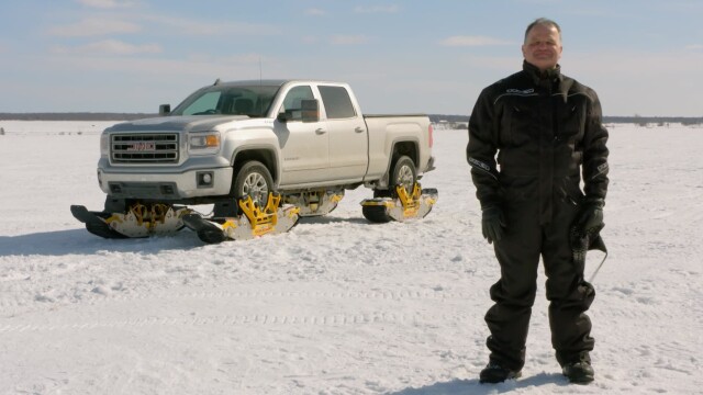Canadian engineer Denis Boivin has invented the track 'n Go, which makes it possible for any 4x4 vehicle to become a snowmobile in 15 minutes.