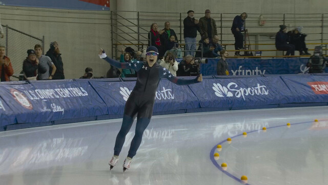 After a faulty exchange led to her disqualification in the 1500m, Greta Myers was granted a re-skate and raced the distance faster than her first attempt by 0.7 seconds, reclaiming second place.