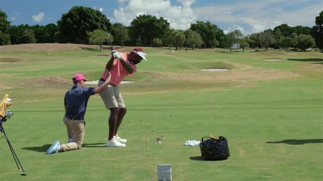 J.R. Smith, a two-time NBA champion, visits GolfPass coach Chris Como for a private lesson; after he retired, he enrolled in college and make the North Carolina A&T golf team as a freshman.