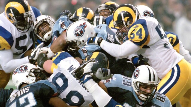 The St. Louis Rams defeat the Tennessee Titans 23-16 after linebacker Mike Jones makes a game saving tackle on the 1-yard line as time expires preserving the Rams first-ever Super Bowl Championship. From Jan. 30, 2000 at Georgia Dome in Atlanta.