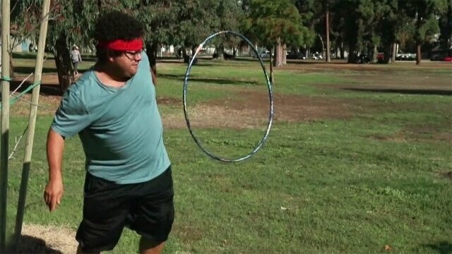 Towing friends behind a car; a big kid gets knocked off his Segway; giggly girls bounce on balloons; a pie to the face.