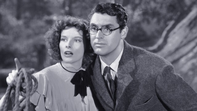 Harried paleontologist David Huxley (Cary Grant) has to make a good impression on society matron Mrs. Random (May Robson), who is considering donating one million dollars to his museum. On the day before his wedding, Huxley meets Mrs. Random's high-spirited young niece, Susan Vance (Katharine Hepburn), a madcap adventuress who immediately falls for the straitlaced scientist. The ever-growing chaos -- including a missing dinosaur bone and a pet leopard -- threatens to swallow him whole.