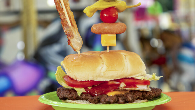 Noah Cappe tries new coastal classics at the LA County Fair in Pomona, like the caviar cream cake; Noah sinks his teeth into the bloody mary burger at the Macon County Fair in Illinois and fried maple cookies 'n cream at the Vermont Maple Festival.