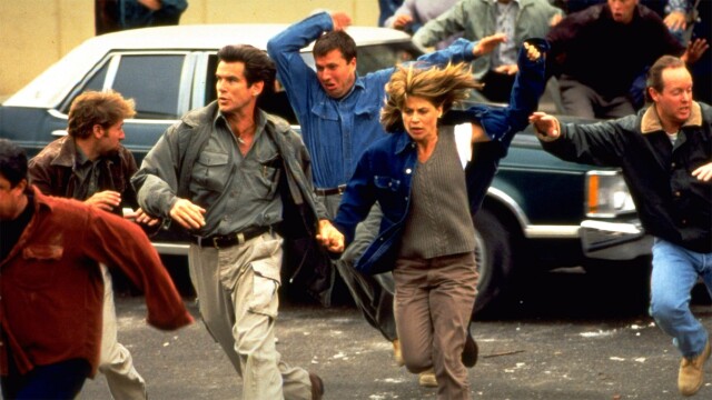 Volcanologist Harry Dalton (Pierce Brosnan) and Mayor Rachel Wando (Linda Hamilton), finally convince the unbelieving populace that the big one is about to hit and that they need to evacuate immediately, only to discover her two children have gone up the mountain to get their grandmother. With Earth's clock racing against them, they must rescue the kids and grandma before the volcano explodes in a fury of flame and ash a million times more powerful than an atomic bomb.