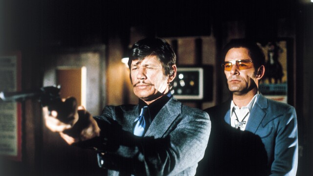 Once a mild-mannered liberal, New York City architect Paul Kersey (Charles Bronson) snaps when intruders break into his home, murdering his wife (Hope Lange) and violently raping his daughter. A business trip to Tucson, Ariz., lands him a gift from a client, a revolver he uses to patrol the streets when he returns home. Frustrated that the police cannot find the intruders, he become a vigilante, gunning down any criminal that crosses his path. The public finds this vigilantism heroic.