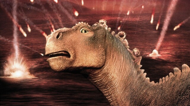 This is the story of Aladar (D.B. Sweeney), an iguanodon dinosaur raised by a family of lemurs. Their world is turned upside-down however, when meteors strike, turning their green world into a desert wasteland. Teaming up with a herd of other herbivores, the trek is on to find the "Nesting Ground" where water and vegetation is bountiful... but with carnivores behind them and nothing but desert around for miles, it doesn't look promising!