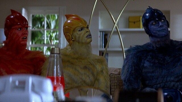 In this musical comedy, Valerie (Geena Davis) is dealing with her philandering fiancé, Ted (Charles Rocket), when she finds that a trio of aliens (Jeff Goldblum, Jim Carrey, Damon Wayans) have crashed their spaceship into her swimming pool. Once the furry beings are shaved at her girlfriend's salon, the women discover three handsome men underneath. After absorbing the native culture via television, the spacemen are ready to hit the dating scene in 1980s Los Angeles.