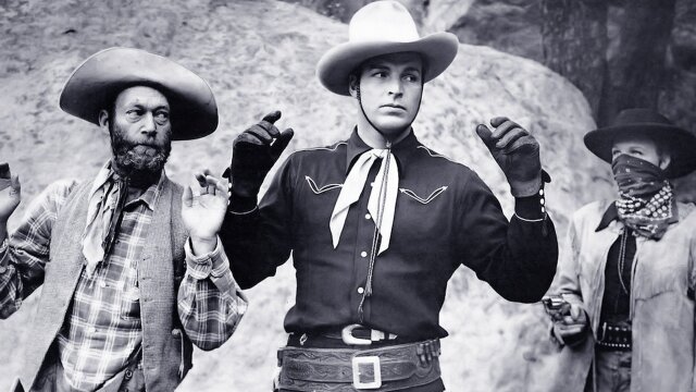 Billy the Kid (Buster Crabbe) stages a shootout with outlaws who have transformed an innocent young lady into a wanted desperado.