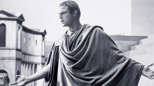 Brutus (James Mason) is convinced by a scheming band of Roman senators, led by Caius Cassius (John Gielgud), that his dear friend Julius Caesar (Louis Calhern) intends to dissolve the republic and install himself as monarch, and he joins a conspiracy to assassinate him. Brutus stirringly defends his actions, but when Mark Antony (Marlon Brando) responds with a speech that plays upon the crowd's love for their fallen leader, a battle between the two factions is assured.