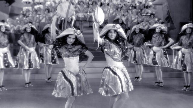 The Warner Bros. revue, with master of ceremonies (Frank Fay), begins with 192 dancing girls on a huge staircase.