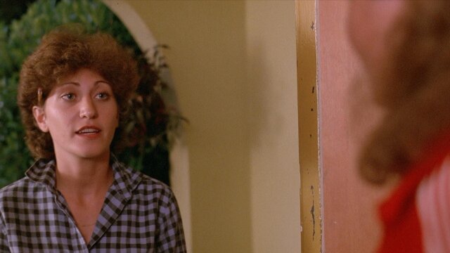 Someone with a power drill shows up uninvited to Trish's (Michele Michaels) high-school pajama party.