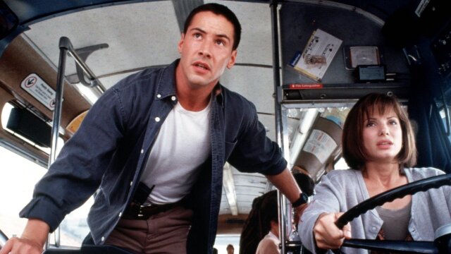 Los Angeles police officer Jack (Keanu Reeves) angers retired bomb squad member Howard Payne (Dennis Hopper) by foiling his attempt at taking hostages. In revenge, Payne arms a bus with a bomb that will explode if it drops below 50 miles per hour. With the help of spunky passenger Annie (Sandra Bullock), Jack and his partner Harry (Jeff Daniels) try to save the people on the bus before the bomb goes off, while also trying to figure out how Payne is monitoring them.