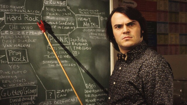 Overly enthusiastic guitarist Dewey Finn (Jack Black) gets thrown out of his bar band and finds himself in desperate need of work. Posing as a substitute music teacher at an elite private elementary school, he exposes his students to the hard rock gods he idolizes and emulates -- much to the consternation of the uptight principal (Joan Cusack). As he gets his privileged and precocious charges in touch with their inner rock 'n' roll animals, he imagines redemption at a local Battle of the Bands.